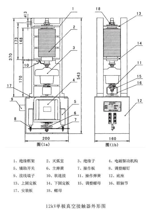 说明:JCZ5系列单极高压真空接触器系50HZ,单相户内控制设备,适用于额定电压12kV和7.2kV以下电压等级、额定工作电流到800A、630A、400A、200A的电力系统,可对高压用电设备进行控制和频繁操作。