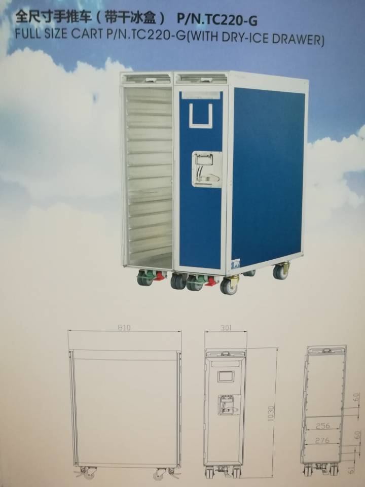 说明:民航飞机客舱用全尺寸送餐手推车